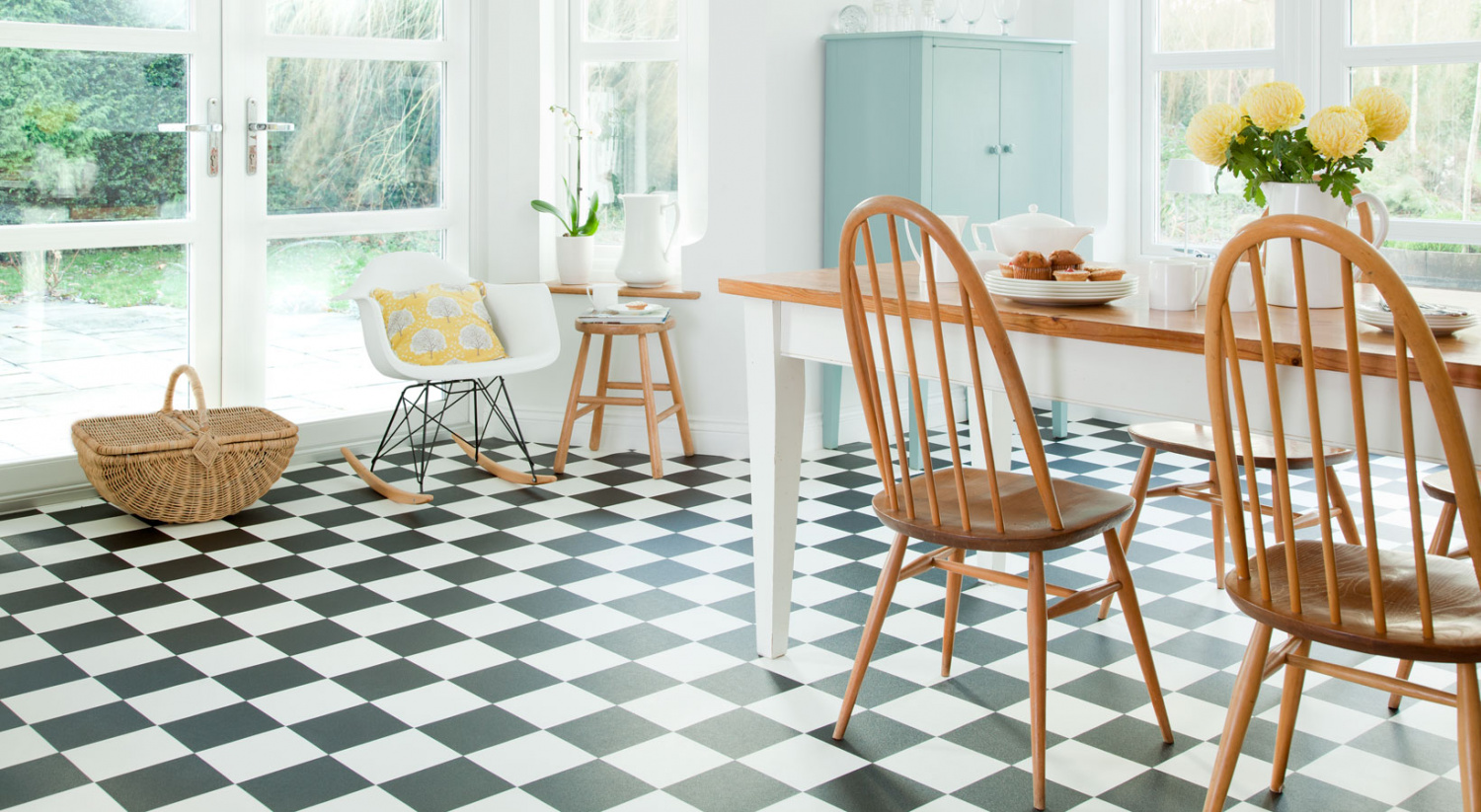 Линолеум как черно-белая плитка (ШАХМАТНАЯ ДОСКА)