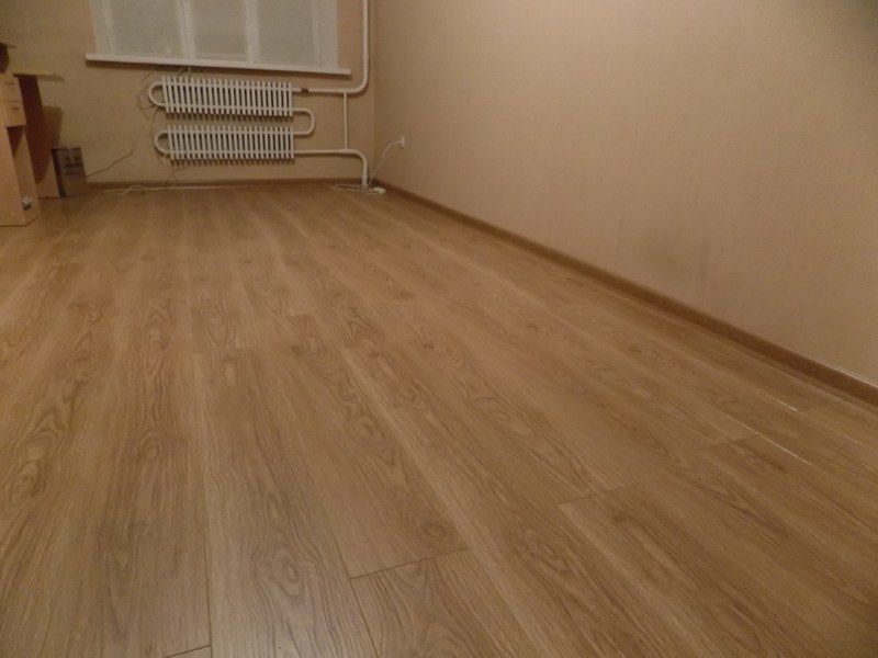 Заказчик выбрал ламинат серии "Westerhoh Stail Grand" "Фокстрот" 1215*197*8 и плинтус "Идеал Элит" Дуб/201. Вместе данный ламинат и плинтус дали отличный результат.